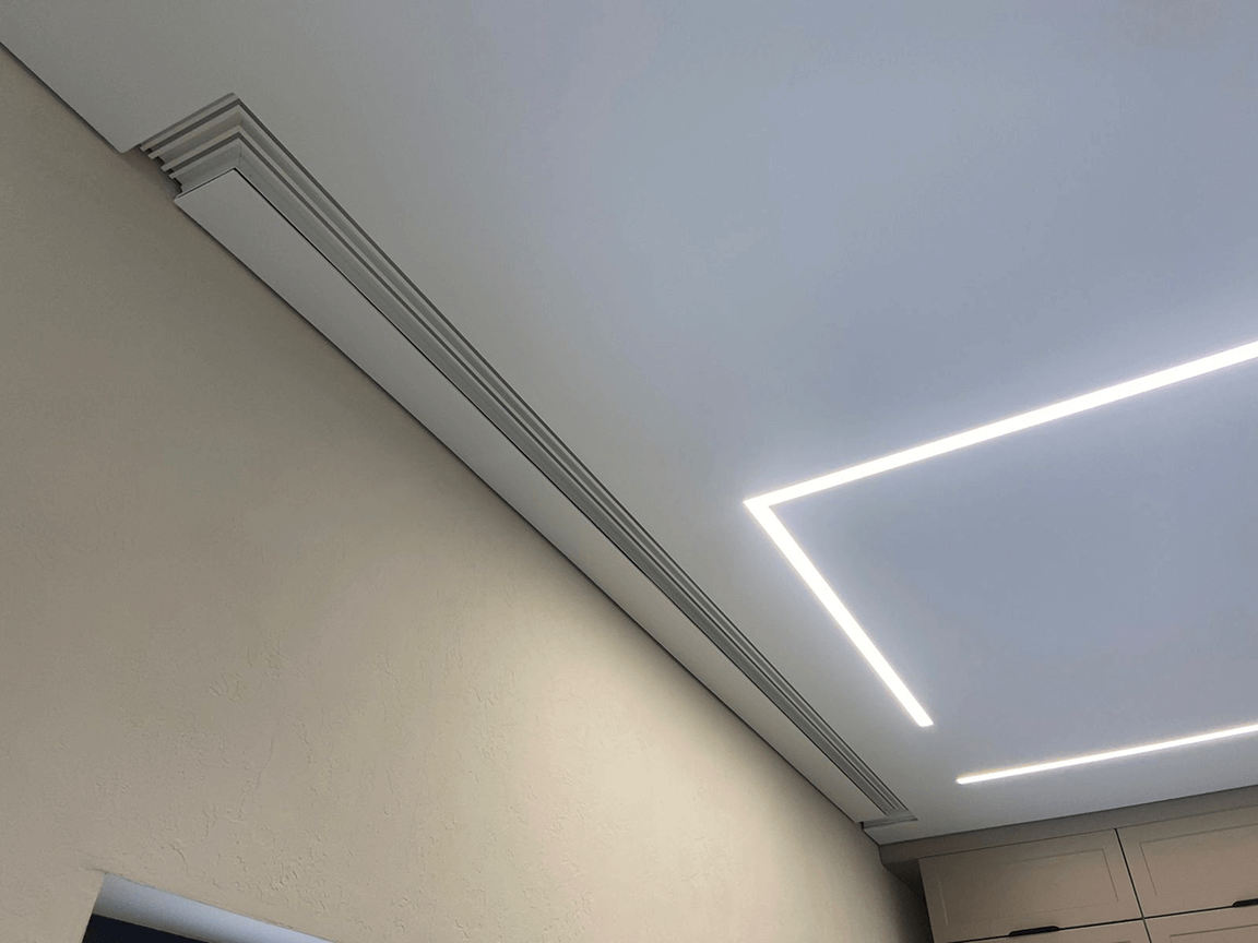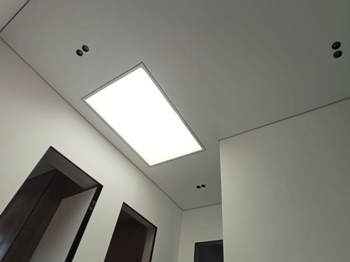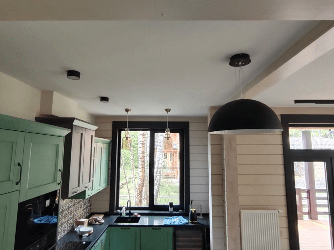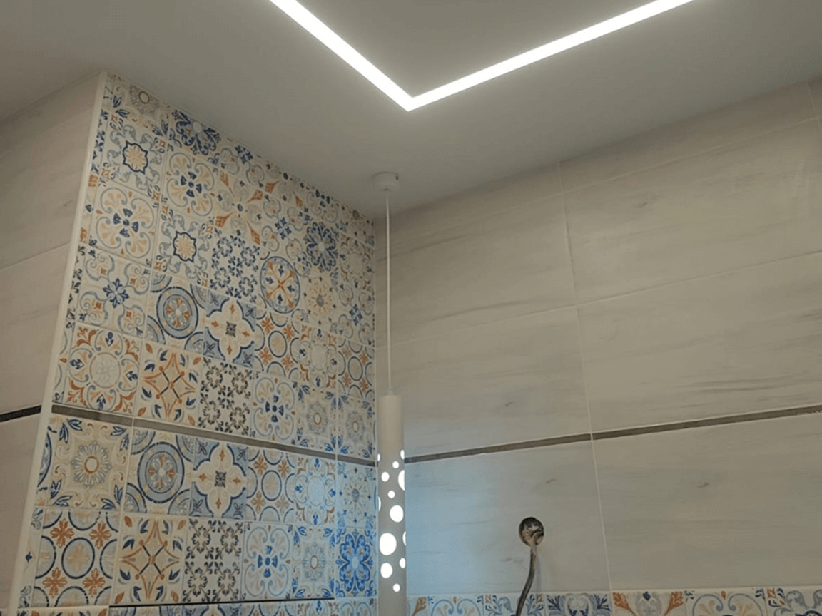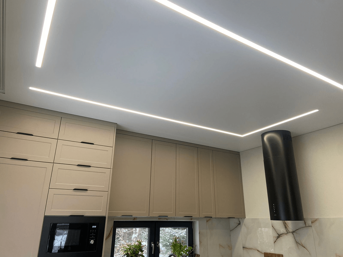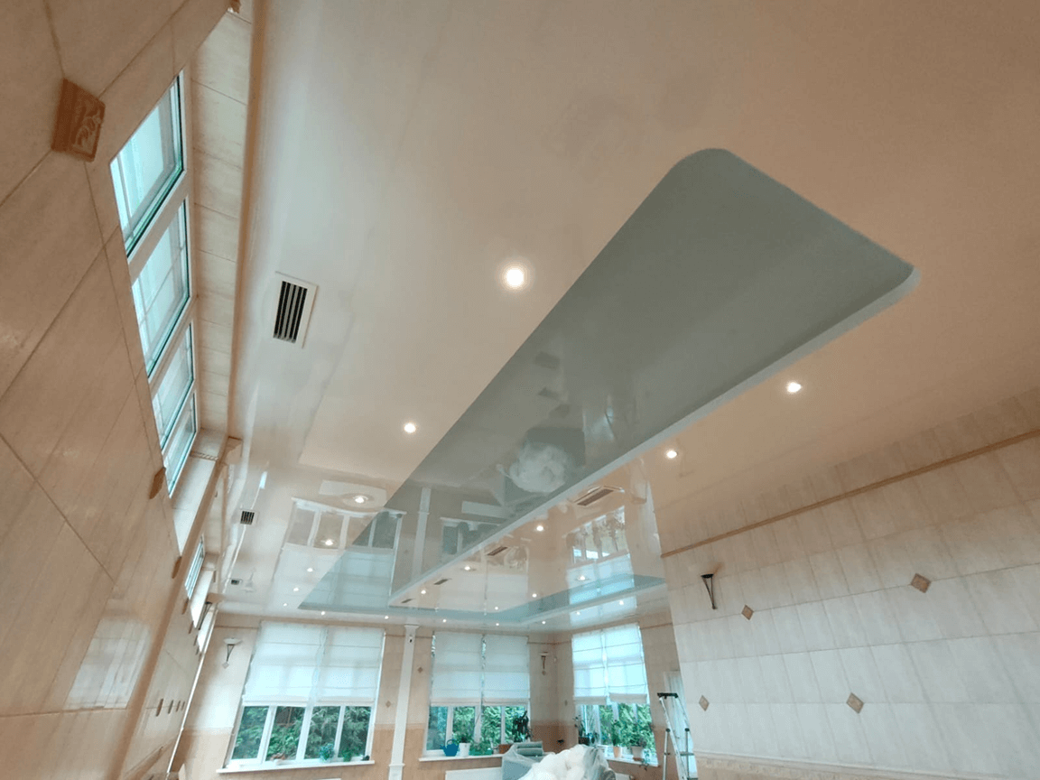 Полотно из ПВХ-пленки или ткани позволит создать идеально ровный потолок, скрыв трещины, перепады высот или другие дефекты перекрытия. При необходимости можно «спрятать» трубопроводы, вентиляционные каналы или другие коммуникации без ущерба их функциональности.